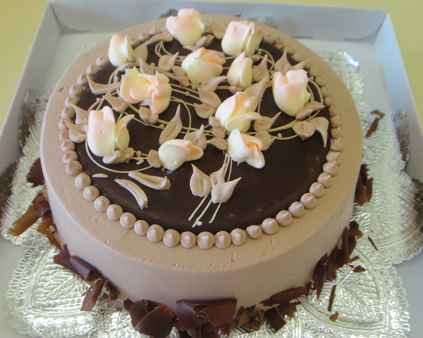 ジェノワーズをチョコレートのバタークリームとガナッシュクリームでサンドしたケーキです。